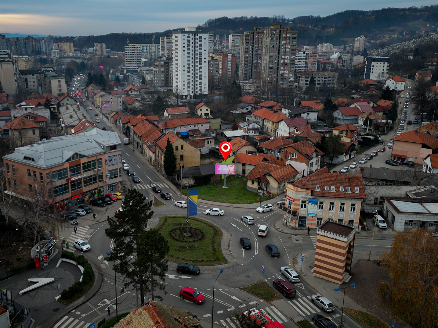 Veliki digitalni LED displej namijenjen vanjskom oglašavanju, postavljen na izuzetno frekventnoj magistralnoj saobraćajnici u Tuzli.